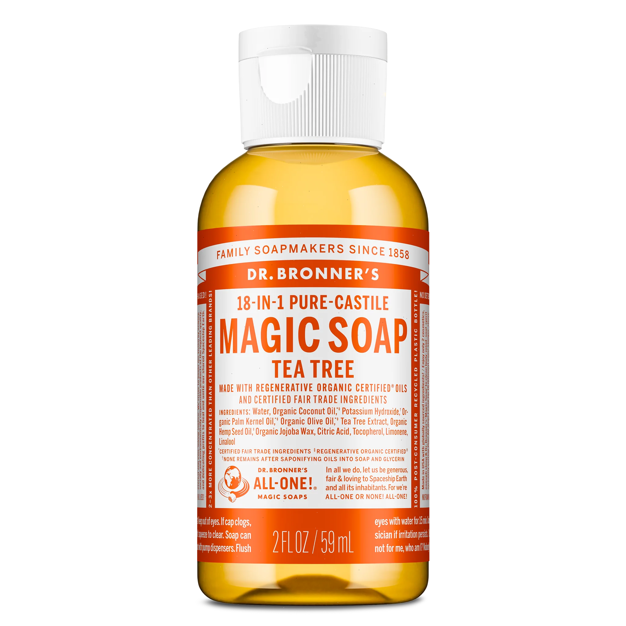 Reset and refresh with Dr. Bronner’s Tea Tree Liquid Soap, scented with pure tea tree essential extract to deeply cleanse and feel renewed. This Magic Soap creates a rich, smooth lather that rinses clean, leaving behind a fresh, invigorating feel. Made with Regenerative Organic Certified® plant-based oils, it’s crafted with organic, ethically sourced ingredients—no detergents, dyes, or added foaming agents. Vegan, made with organic oils, fair trade, and EWG Verified®—because clean skin starts with good ingredients.